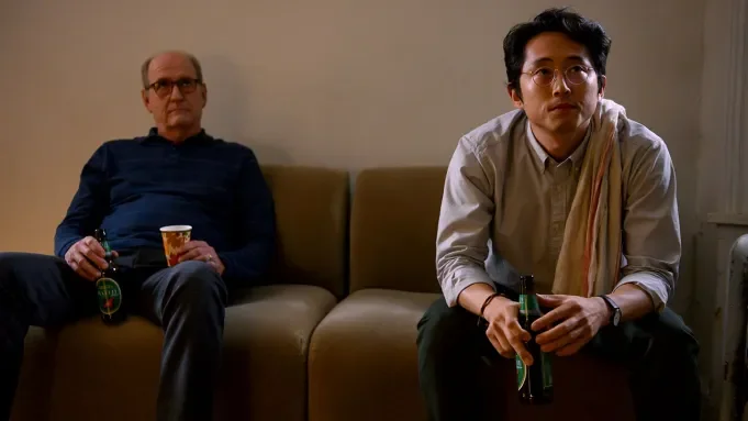 Richard Jenkins and Steven Yeun in The Humans. Photo: A24.