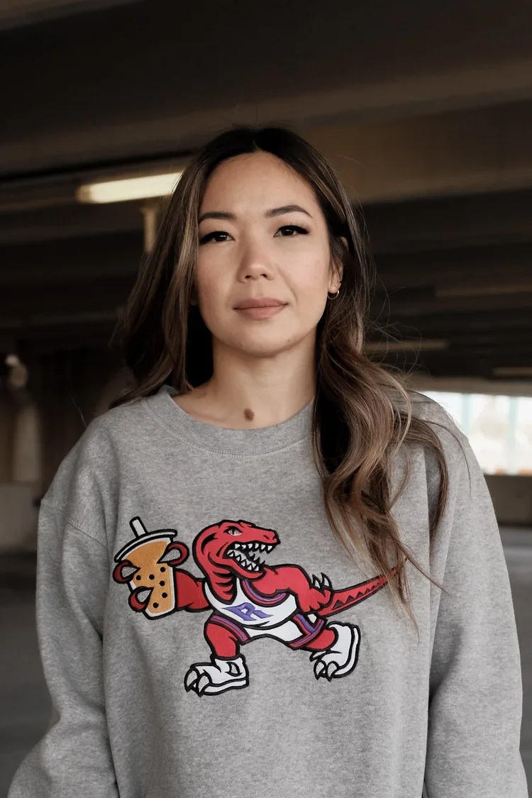 The capsule collection is a celebration of 25+ years of partnership between the Toronto Raptors and CCYAA, a non-profit organization dedicated to promoting sports, fair play and a sense of community for Asian youth across the Greater Toronto Area. It consists of two T-shirts, a long-sleeve tee and a crewneck sweater featuring the Toronto Raptor holding the most universally-loved drink in Asian culture: bubble tea.
