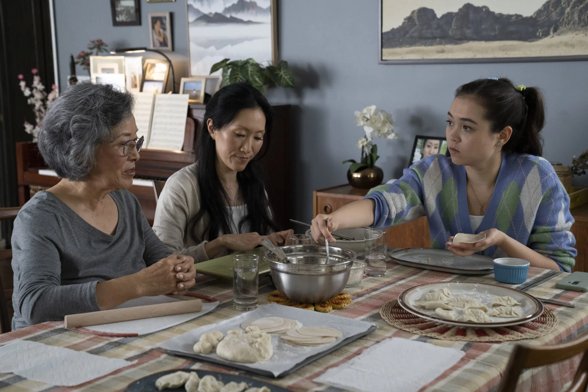 Halmeoni (Soon-Year Lee), Auntie Jiyeon (Kimmy Choi) and Hannah (Julia Kim Caldwell) in Gangnam Project. Photo: CBC Gem.