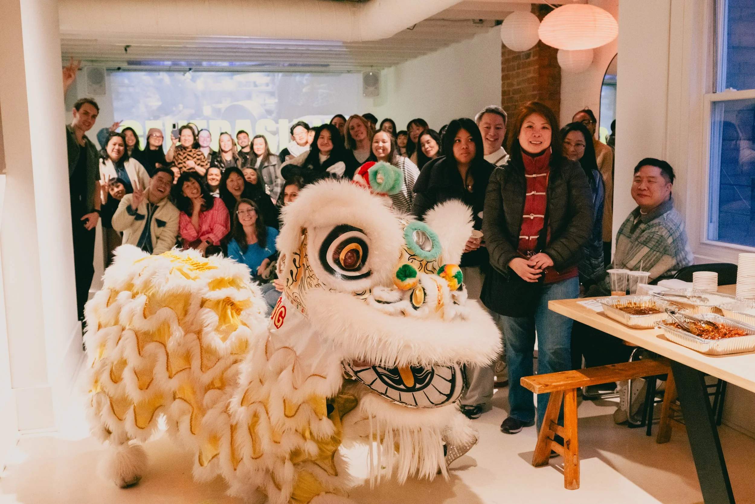 Guests at the GENERASIANS premiere following a lion dance fromg Hong Luck Kung Fu. Photo: Miki Kawaguchi.