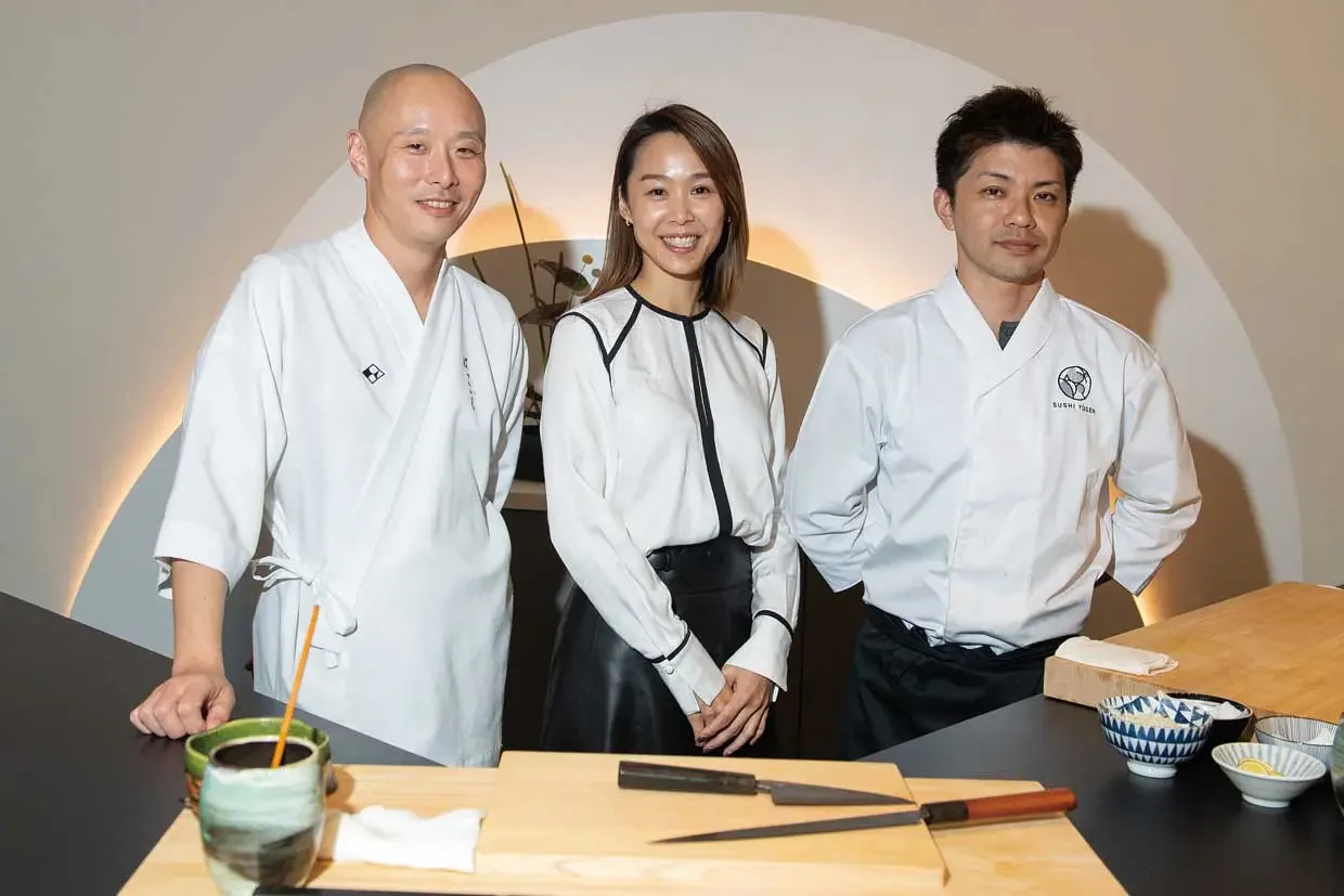 Kamen Sun (centre) with Sushi Yugen Head Chef Kyohei Igarashi (right) and award-winning Michelin Chef Hiroyuki Sato (left). Photo: torja.ca.
