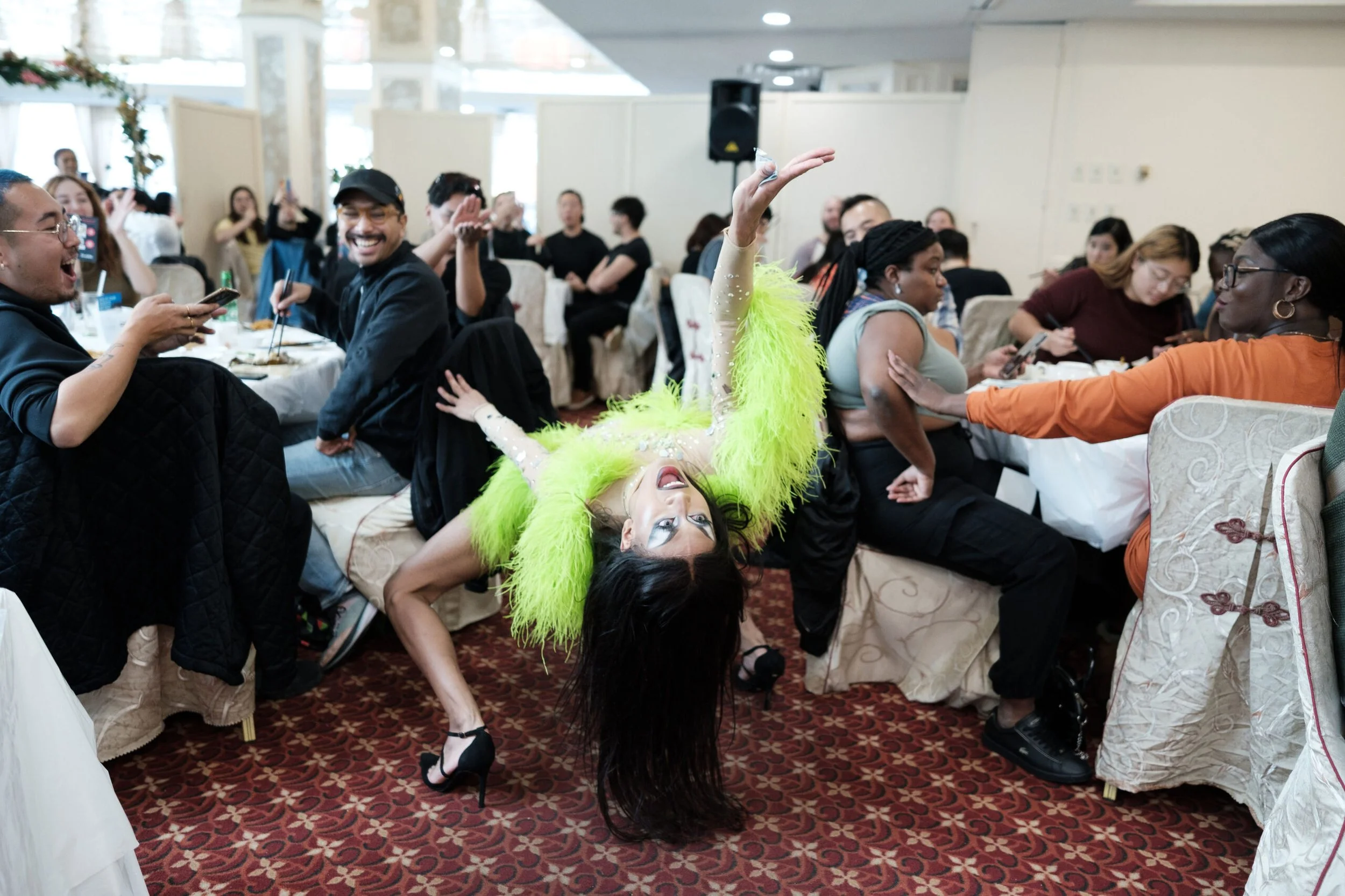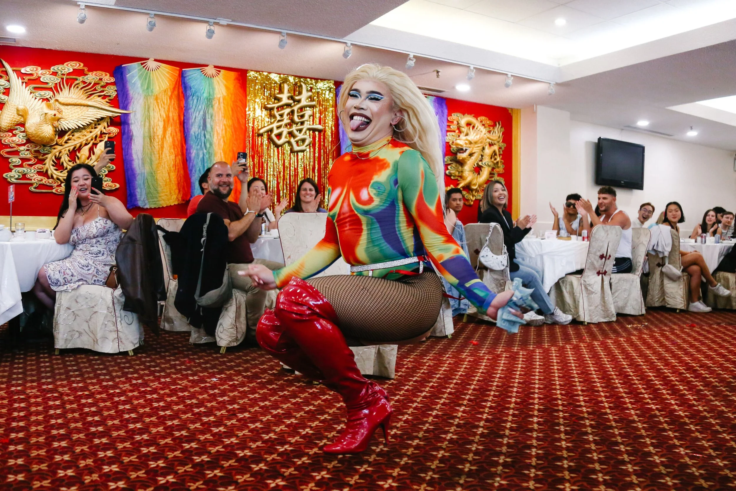 Finding the right venue, however, was another challenge. Chinese restaurants, with their built-in sound systems for wedding banquets, were ideal stages, but securing one that would welcome a queer event was uncertain. Sky Dragon seemed like the perfect fit; its owner Charlie Lin had previously hosted ACAS workshops. Still, there was hesitation. “He is, you know, a middle-aged older uncle—we didn’t know what his views were,” Tran admits.